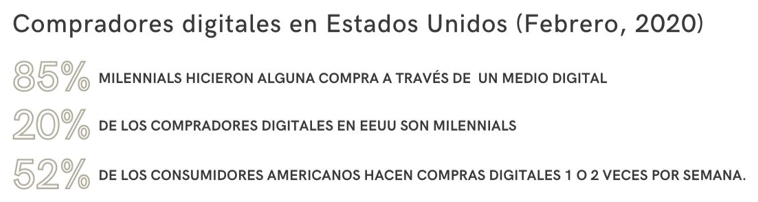 Sabemos que los millennials aman la tecnología al punto de considerar como indispensable a los asistentes virtuales. Según Statista (2022), el 20% de los consumidores estadounidenses que realizan compras por internet tienen un rango de edad de entre 25 a 34 años.