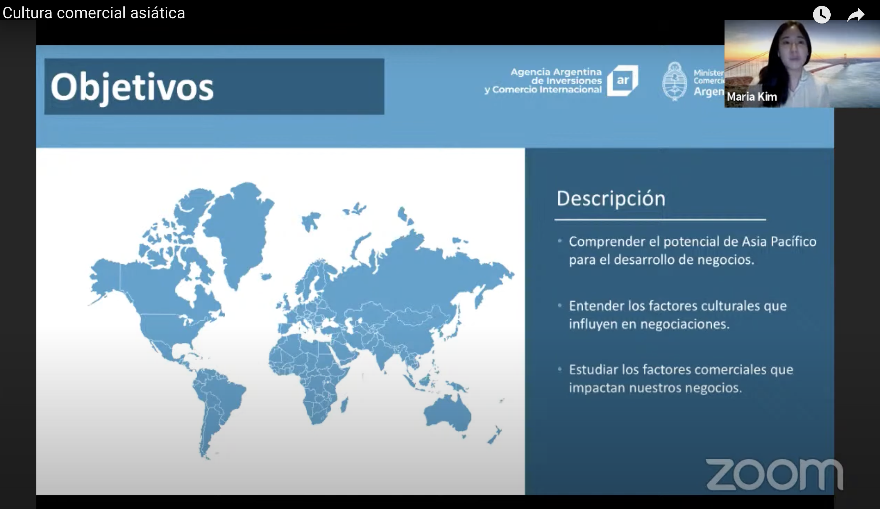En esta capacitación virtual otorgada en la Agencia Argentina de Inversiones y Comercio Internacional el 4 de agosto del 2021, hablamos sobre las tendencias más actualizadas del comercio de Asia Pacífico y los puntos más importantes a nivel cultural a tener en cuenta al momento de hacer negocios en la región. Capacitación 100% gratuita y disponible al público.